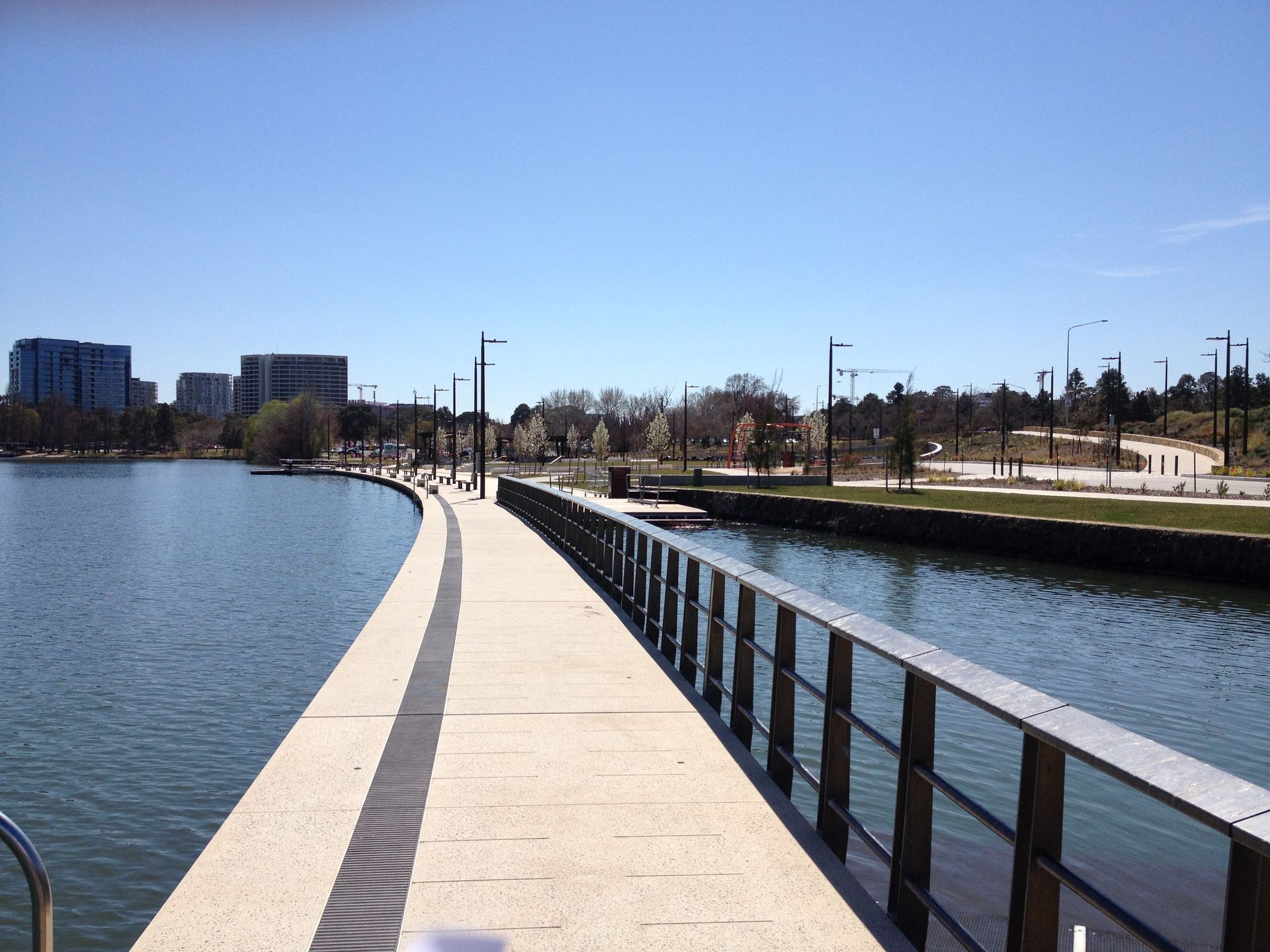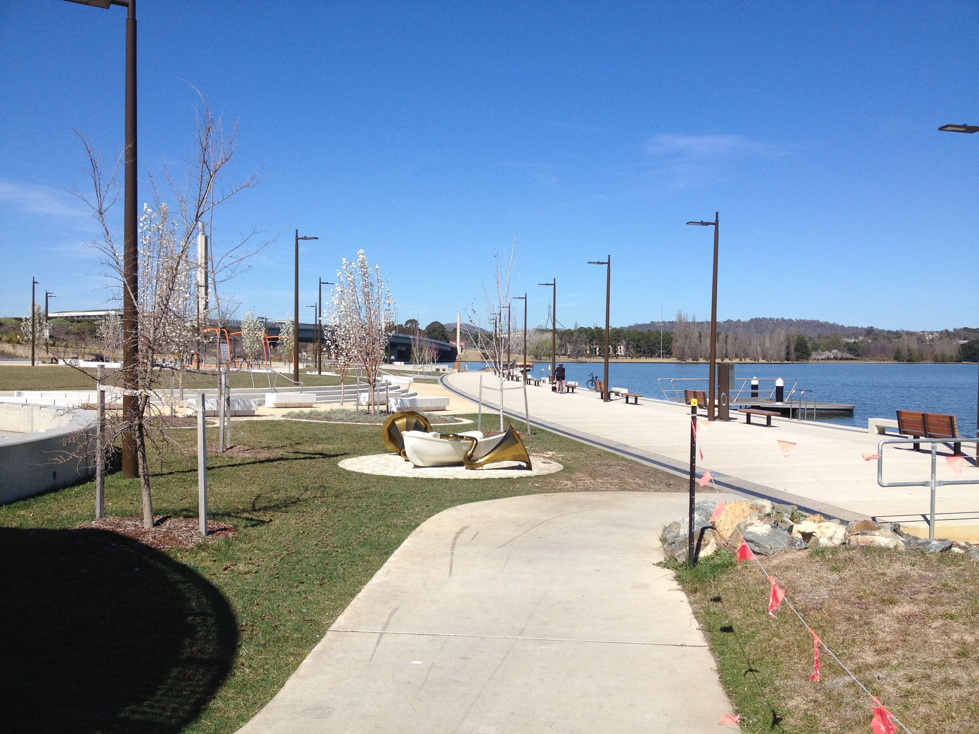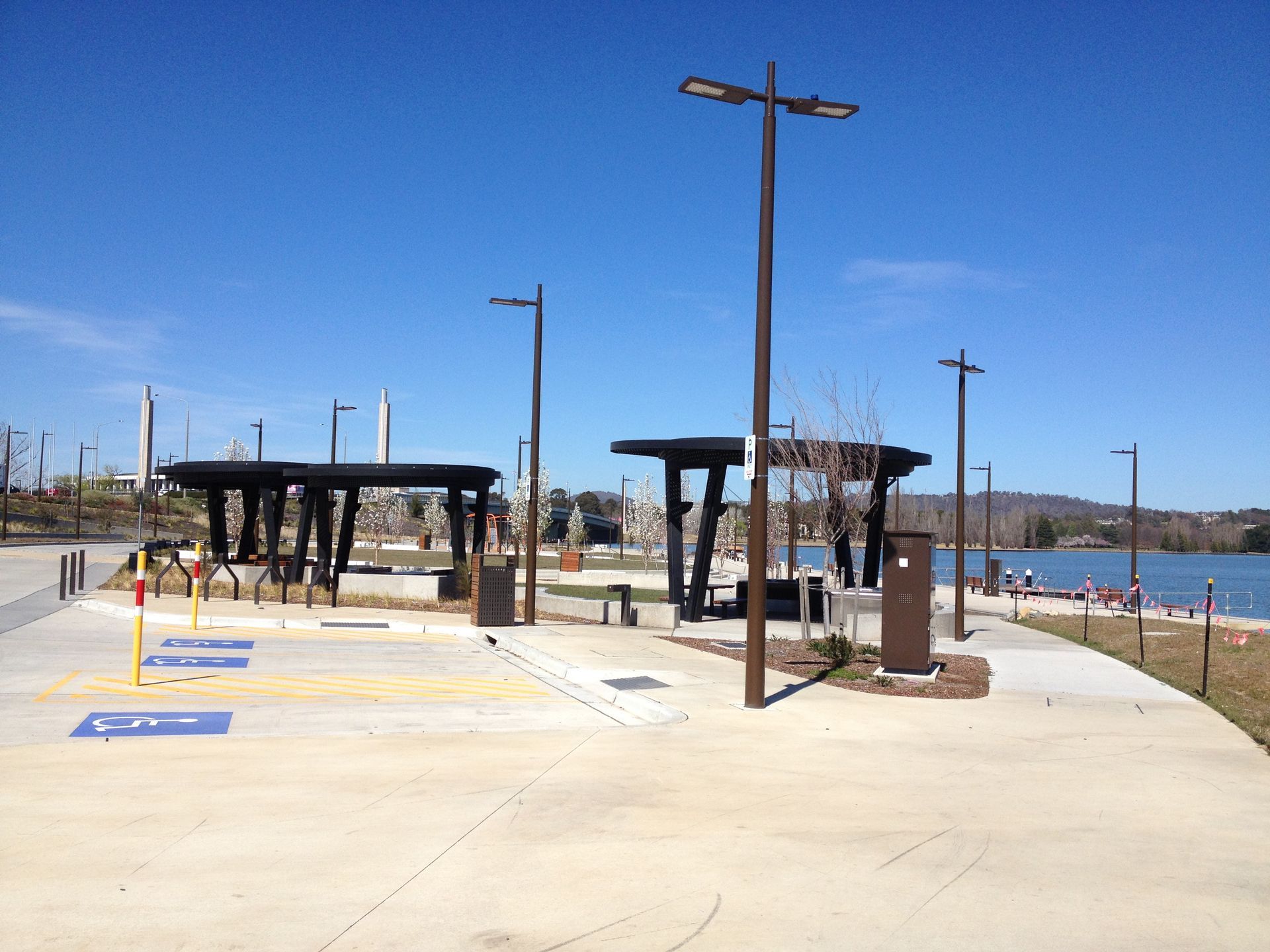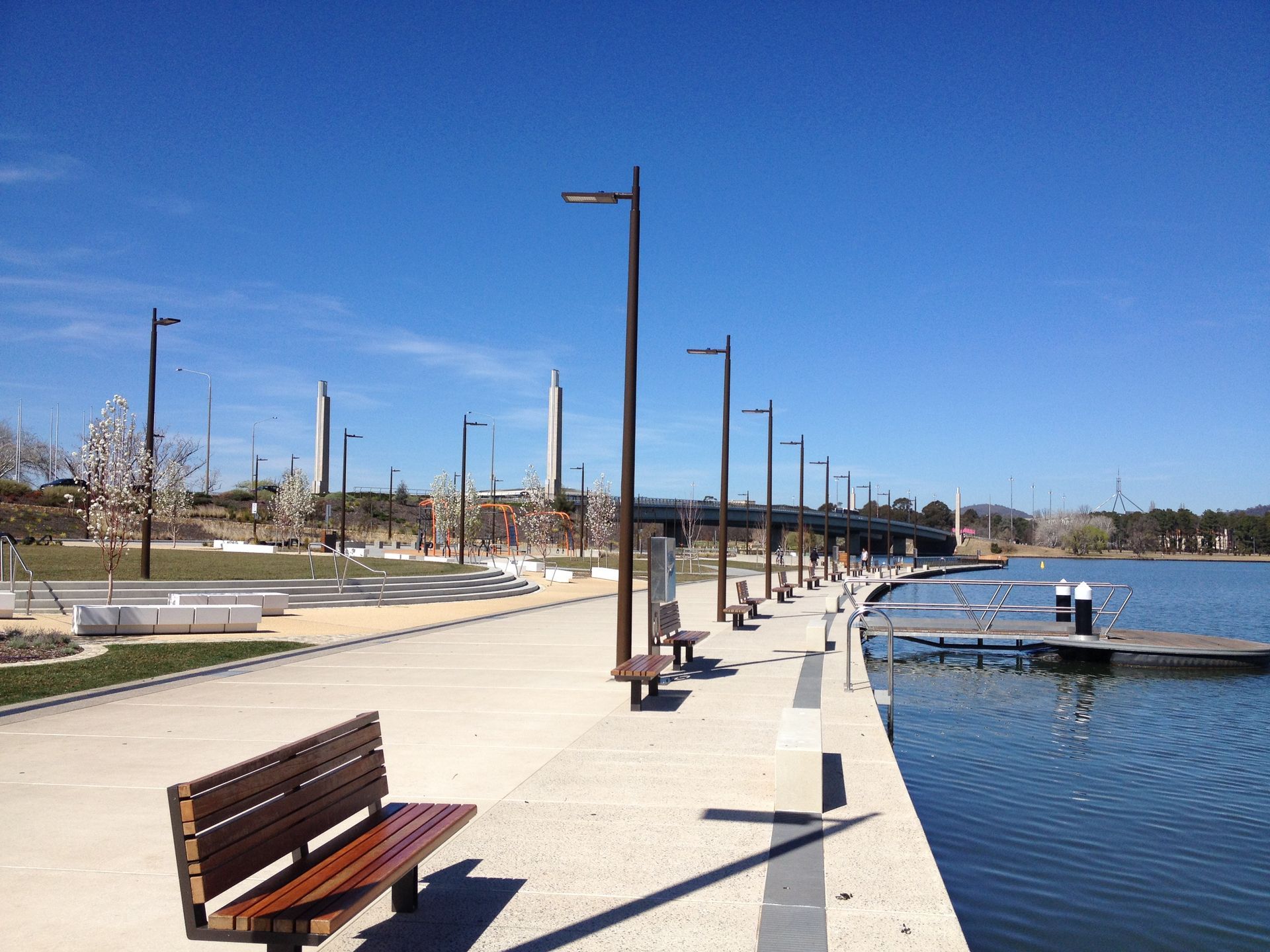The project has completely transformed the West Basin area of Lake Burley Griffin. The project incorporates a boardwalk with area lighting, seat feature lighting and Griffin Marker light (marking the line for Walter Burley Griffins original water axis from Black Mountain to the formal central lake).